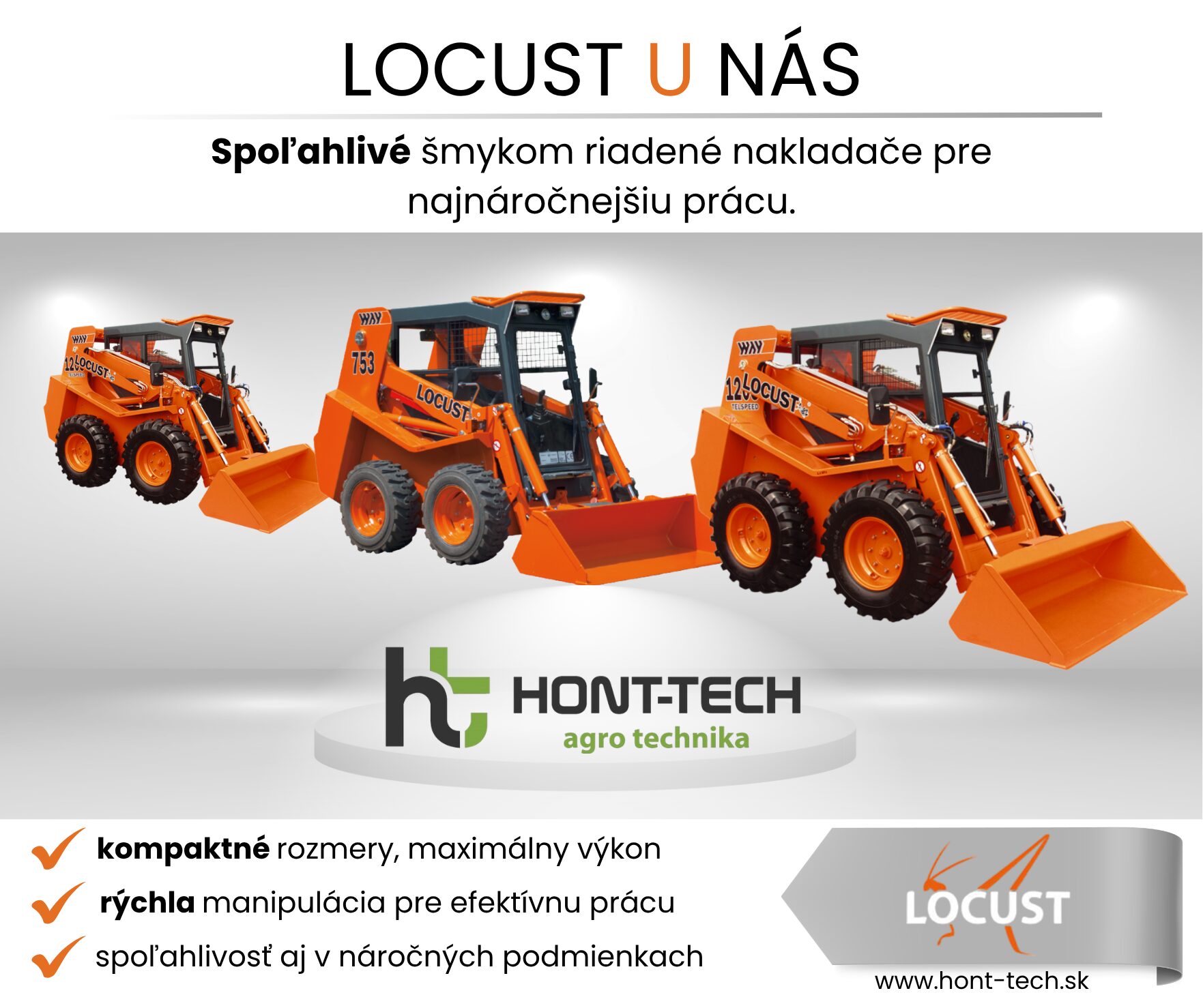 S radosťou vám predstavujeme novinku v našej ponuke – šmykom riadené nakladače LOCUST, ktoré prinášajú výkon, precíznosť a spoľahlivosť priamo na váš pracovný dvor. Ide o ideálne riešenie pre stavebníctvo, poľnohospodárstvo či komunálne služby, kde je dôležitá manévrovateľnosť a efektivita práce.